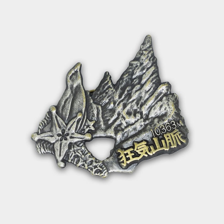 山の記念グッズとして代表的な「登山記念バッジ」の狂気山脈バージョン。