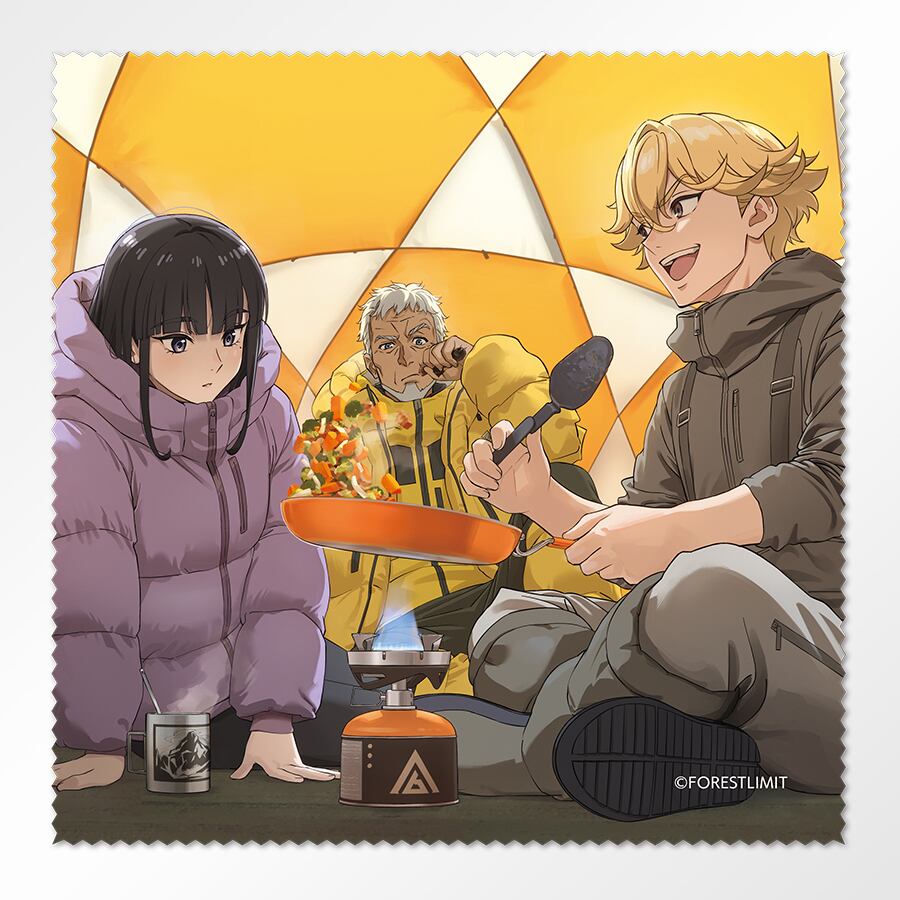 『狂気山脈 ~邪神の山嶺~』『狂気山脈 ネイキッド・ピーク』の登場人物、K2・梓・コージーの、ベースキャンプでの様子を描いたグッズです。